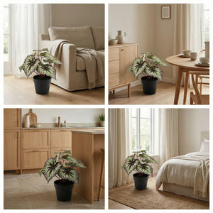 Deze Begonia kunstplant van 26 cm met grijs-paarse bladeren is een unieke, onderhoudsvrije plant die kleur en karakter toevoegt aan je interieur of buitenruimte. Dankzij het UV-bestendige materiaal is deze kunstplant geschikt voor binnen en buiten. De compacte maat en opvallende bladkleur maken deze plant ideaal voor vensterbanken, tafels of balkondecoratie.