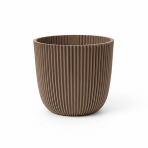 - De pot heeft een natuurlijke groefstructuur die doet denken aan de vormen van boomschors en aarde.