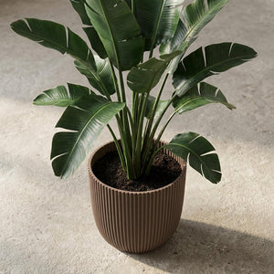 Verrijk uw groene hoek met de prachtige Capi Nature Groove pot, een ware ode aan natuurlijke elegantie. De uitnodigende warme taupe tint straalt een behaaglijke rust uit en brengt direct sfeer in elke ruimte. De kenmerkende verticale groeven geven de pot een bijzonder tactiele charme en een moderne doch organische uitstraling, waarbij het licht prachtig speelt en diepte toevoegt aan uw plantenarrangement. Ontworpen om zowel weelderige bladplanten als kleurrijke bloeiers te omarmen, past deze pot moeiteloos in elk interieur en verandert uw binnen- of buitenruimte in een stijlvol toevluchtsoord van natuurlijke schoonheid en ingetogen verfijning.