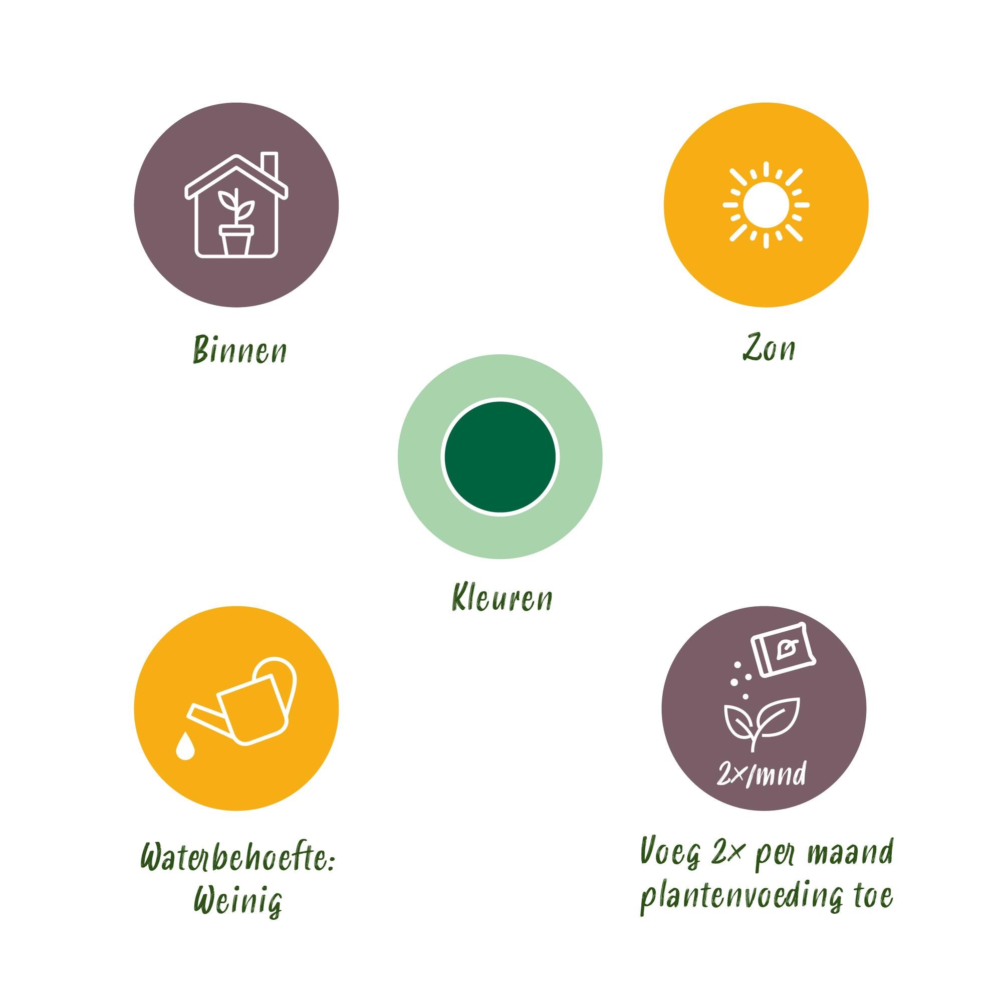 Let op: De planten die we leveren zijn unieke, levende producten. Hoewel we ons best doen om de opgegeven hoogte aan te houden, kan de daadwerkelijke hoogte iets afwijken, afhankelijk van de natuurlijke groei en het seizoen. Zo ontvangt u altijd een gezonde plant die klaar is om verder te groeien!