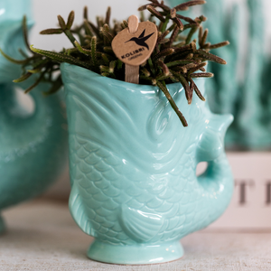Hoe leuk is deze combinatie van de Fish pot in twee verschillende maten! Waan je in de mediterrane sfeer met deze unieke sierpot, speciaal ontworpen om een vakantiegevoel in je huis te brengen met zijn azuurblauwe kleur. De heldere blauwe tint doet denken aan iconische vakantiebestemmingen rond de Middellandse Zee.