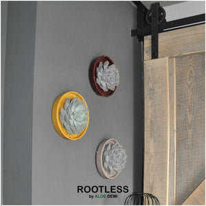 ROOTLESS succulents worden geteeld in een kweekpot en groeien tot het juiste formaat. Als het rozet van de plant groot genoeg is, dan wordt deze losgesneden van de potgrond. Een ROOTLESS kan een Echeveria, Aloe en Gasteria zijn. Andere namen voor ROOTLESS zijn snijvetplant, snijplant, snij-echeveria en snijsucculent.